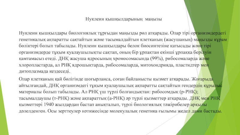 Нуклеин қышқылдары биологиялық тұрғыдан маңызды рөл атқарады.