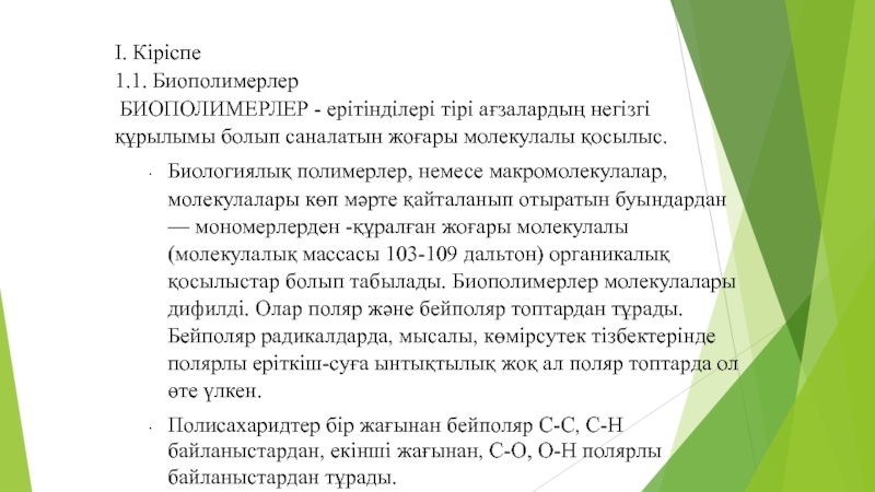 БИОПОЛИМЕРЛЕР - ерітінділері тірі ағзалардың негізгі құрылымы болып