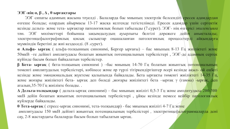 Слайд 17ЭЭГ-нің α, β , Δ , θ ырғақтары