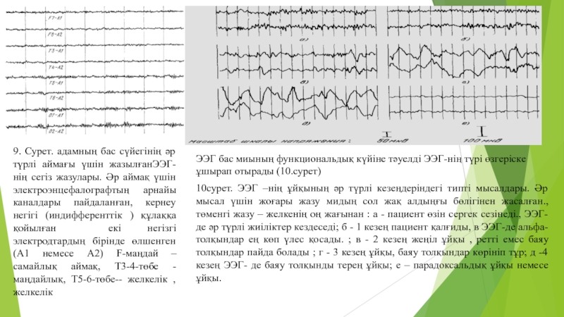 ЭЭГ бас миының функциональдық күйіне тәуелді ЭЭГ-нің түрі өзгеріске ұшырап отырады (10.сурет)