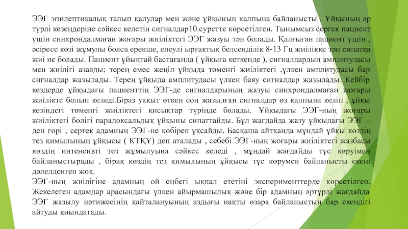 Слайд 21ЭЭГ эпилептикалық талып қалулар мен және ұйқының қалпына байланысты .