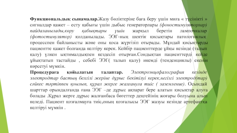 Слайд 23Функциональдық сынамалар.Жазу бөліктеріне баға беру үшін миға « түсінікті »