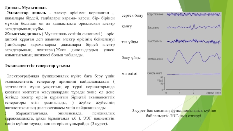 ( жарақаттанғанда, эпилепсияда, психикалық тұрақсыздықта, ұйқы бұзылғанда т.б ). ЭЭГ пациенттің көңіл күйіне тәуелді көп өзгеріске ұшырайды (3.сурет).