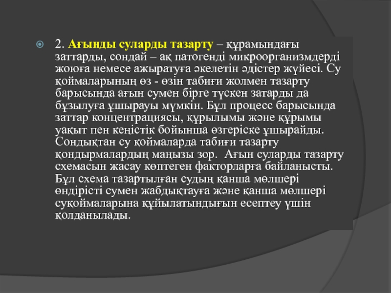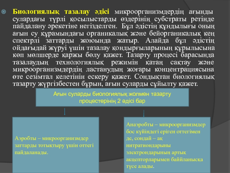 Ағын суларды биологиялық жолмен тазарту процестерінің 2 әдісі бар