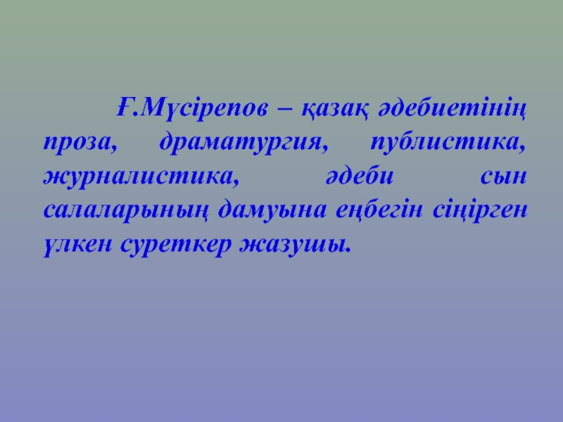 Слайд 8 Ғ.Мүсірепов – қазақ әдебиетінің проза, драматургия,