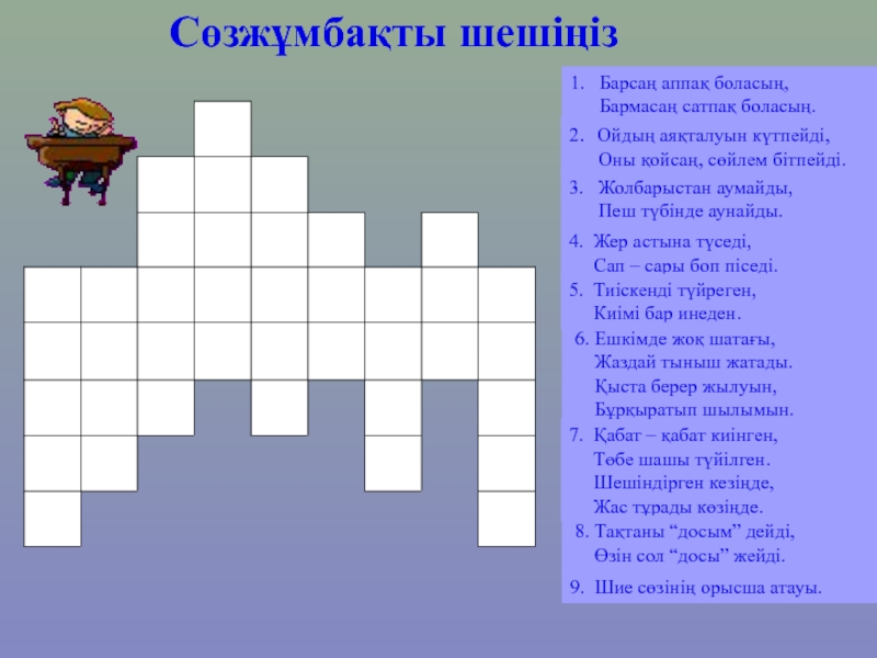 Слайд 4Сөзжұмбақты шешіңіз