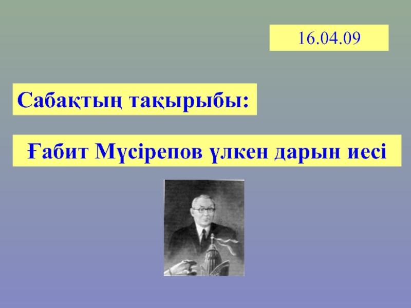 16.04.09Сабақтың тақырыбы: Ғабит Мүсірепов үлкен дарын иесі