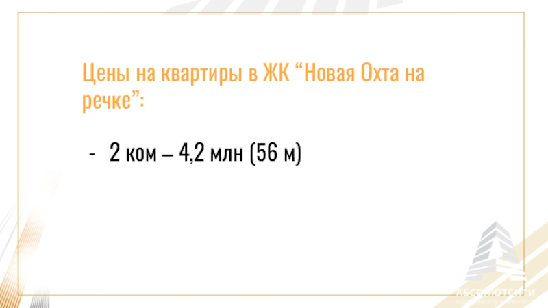 Слайд 48Цены на квартиры в ЖК “Новая Охта на речке”: