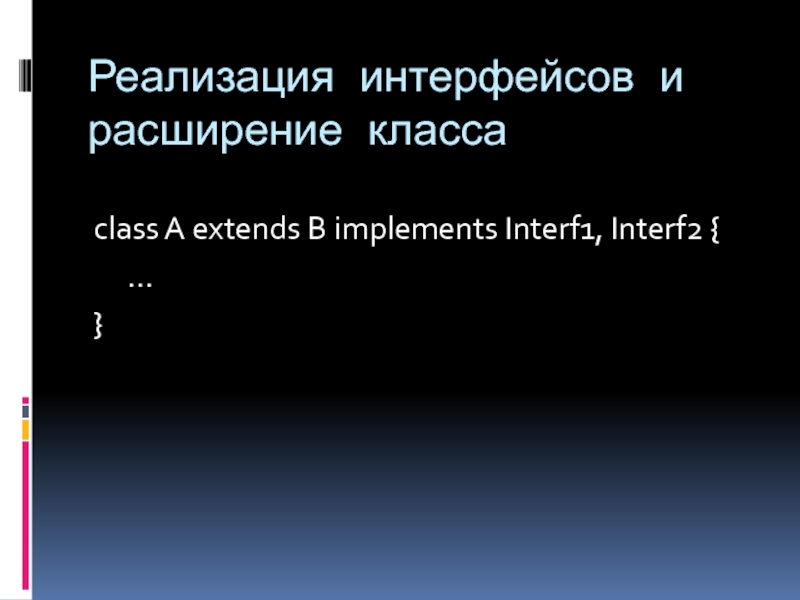 Слайд 25Реализация интерфейсов и расширение класса
