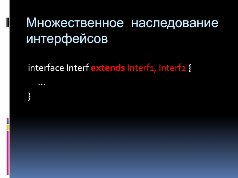 Множественное наследование интерфейсовinterface Interf extends Interf1, Interf2 {	...}