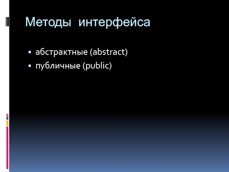 Методы интерфейсаабстрактные (abstract)публичные (public)