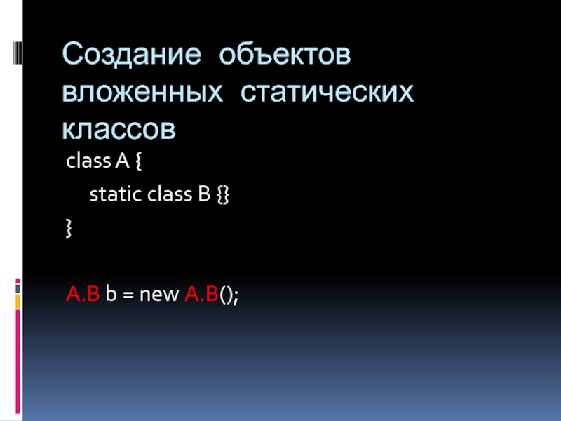 Слайд 14Создание объектов вложенных статических классов