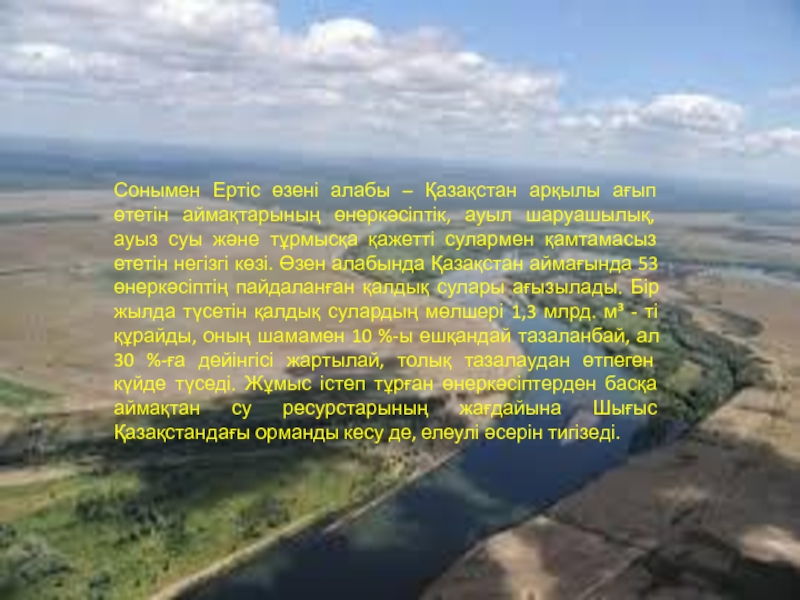 Сонымен Ертіс өзені алабы – Қазақстан арқылы ағып өтетін аймақтарының