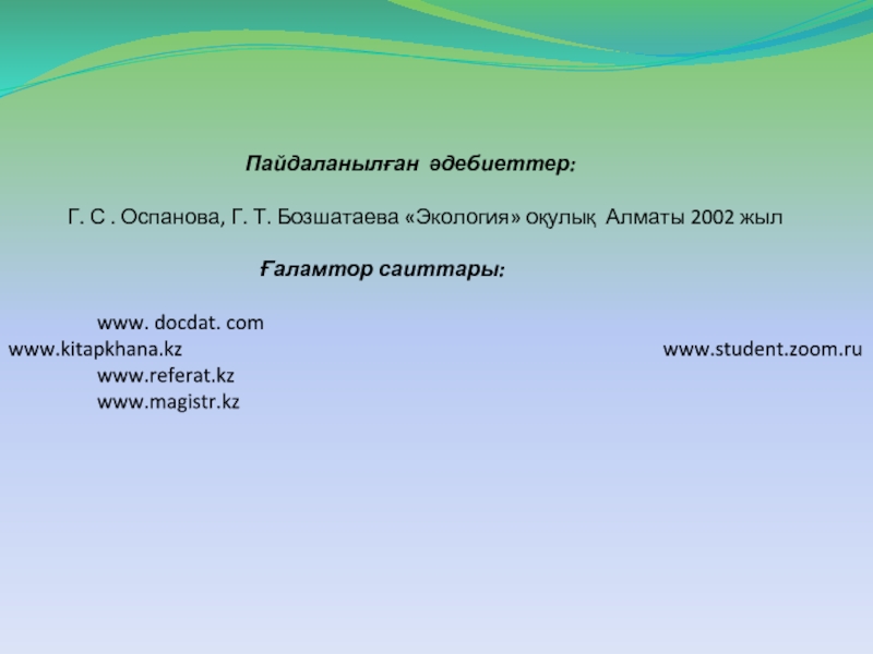 Г. С . Оспанова, Г. Т. Бозшатаева «Экология» оқулық Алматы 2002 жыл