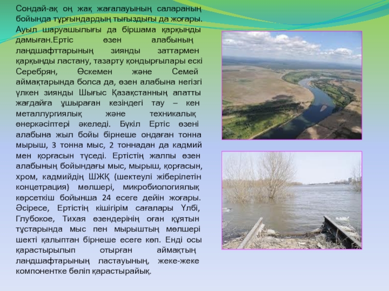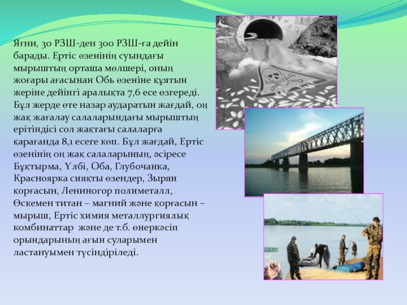 Слайд 16Яғни, 30 РЗШ-ден 300 РЗШ-ға дейін барады. Ертіс өзенінің суындағы