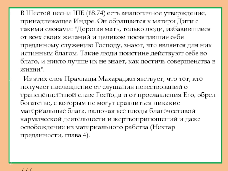 Слайд 48 В Седьмой песни ШБ (6.25) Прахлада Махараджа говорит: "Дорогие