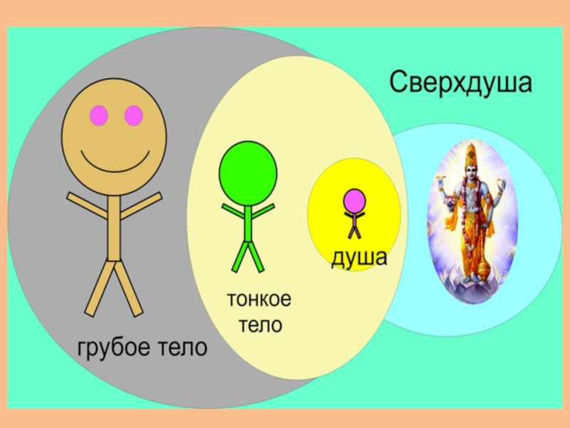 существа, враждебные стихии, а также наше тело и ум. Душа трансцендентна по отношению к телу и уму, но, отождествляя себя с телом и умом, она испытывает страдания, которые являются результатом материального осквернения.