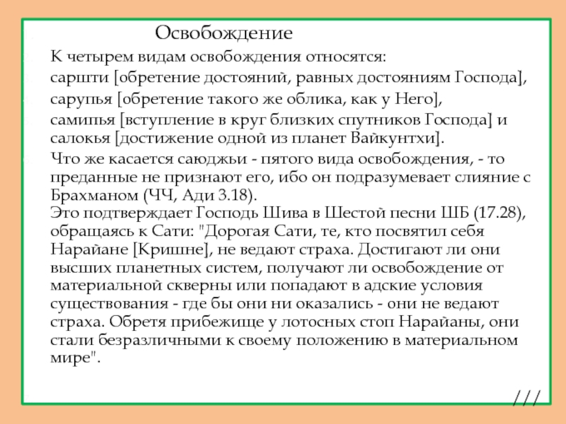 самипья [вступление в круг близких спутников Господа] и салокья [достижение одной из планет Вайкунтхи].