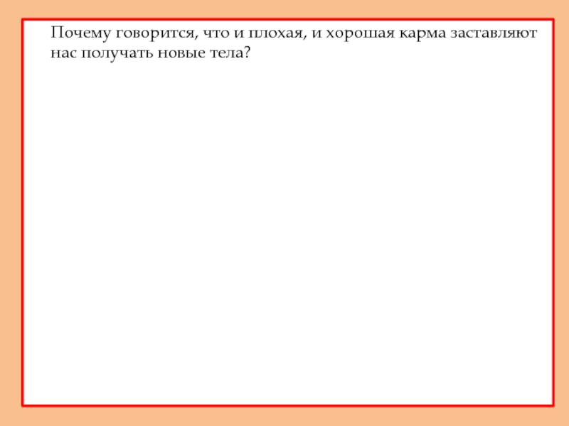 Слайд 25Почему говорится, что и плохая, и хорошая карма заставляют нас