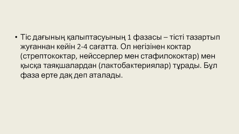 Слайд 27Тіс дағының қалыптасуының 1 фазасы – тісті тазартып жуғаннан кейін