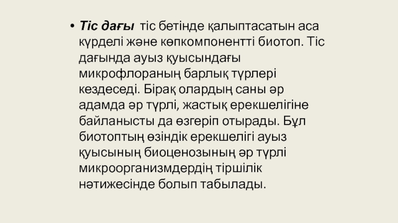 Слайд 25Тіс дағы тіс бетінде қалыптасатын аса күрделі және көпкомпонентті биотоп.