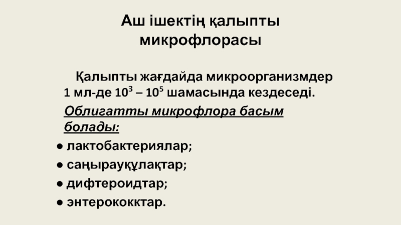 Слайд 13Асқазан-ішек жолдарының қалыпты микрофлорасы
