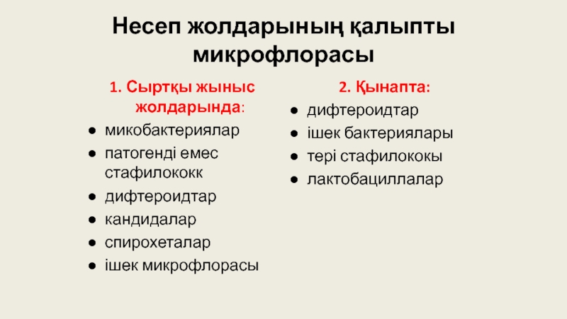 Слайд 9Несеп жолдарының қалыпты микрофлорасы
