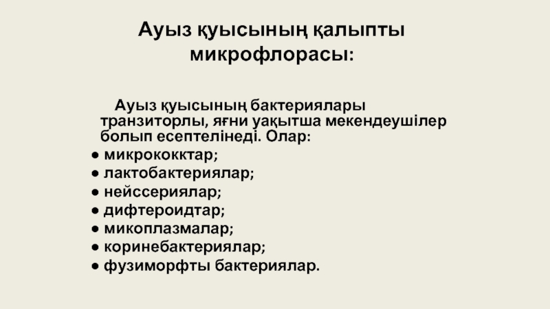 Слайд 18Ауыз қуысының қалыпты микрофлорасы: