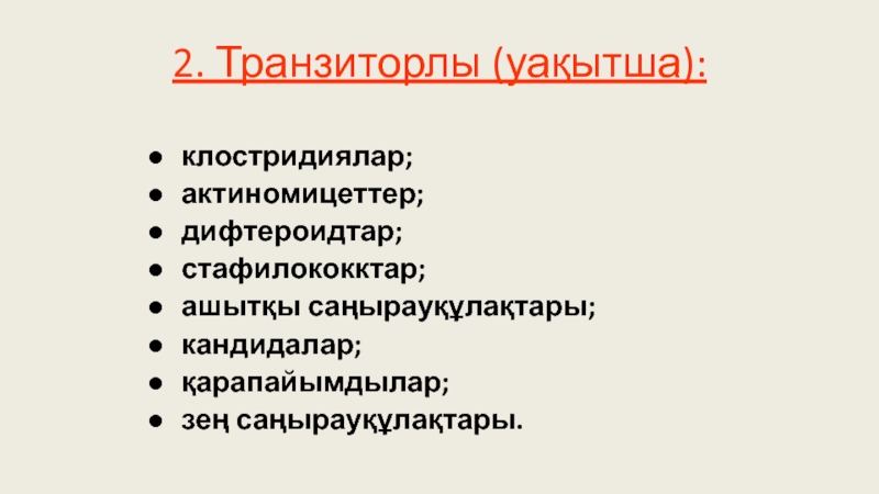 Транзиторлы (уақытша) – тері мен шырышты қабаттарға қоршаған ортадан келіп