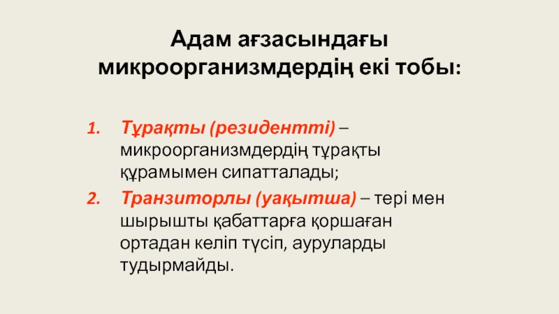 Ауыз қуысының бактериялары транзиторлы, яғни