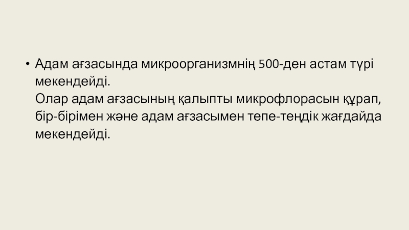 Слайд 2Адам ағзасында микроорганизмнің 500-ден астам түрі мекендейді.