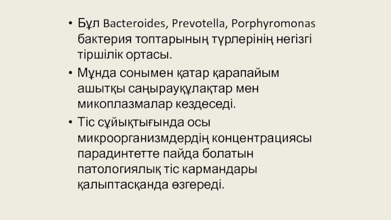 Слайд 22Бұл Bacteroides, Prevotella, Porphyromonas бактерия топтарының түрлерінің негізгі тіршілік ортасы.