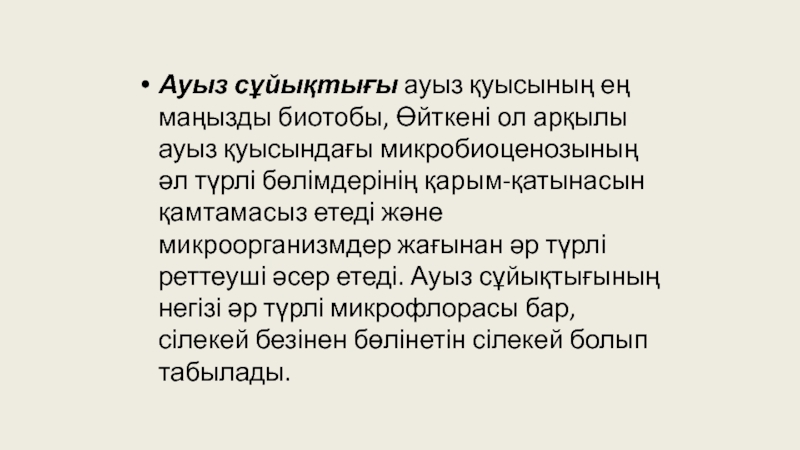 Слайд 23Ауыз сұйықтығы ауыз қуысының ең маңызды биотобы, Өйткені ол арқылы