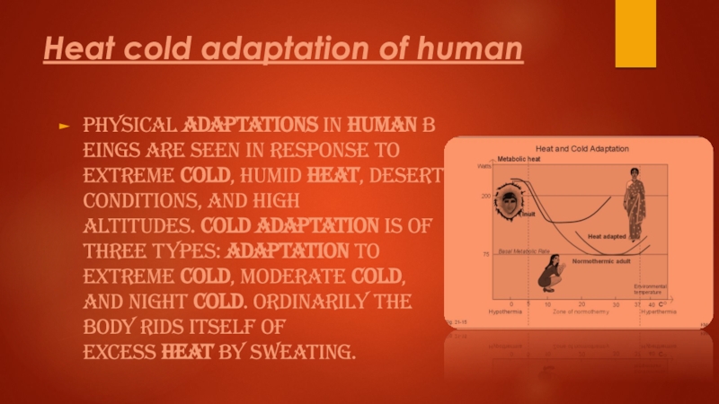 types: adaptation to extreme cold, moderate cold, and night cold. Ordinarily the body rids itself of excess heat by sweating.