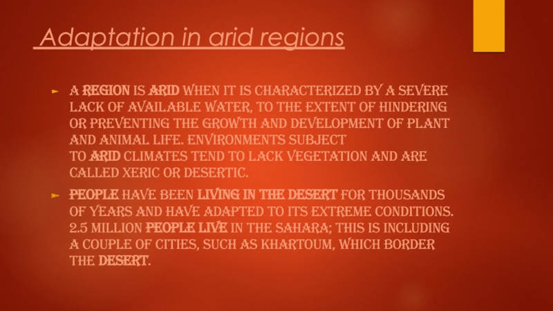 Слайд 17Their traditional lifestyle has adapted to these extremely arid conditions.