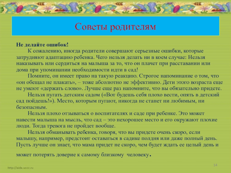 Слайд 14Советы родителям