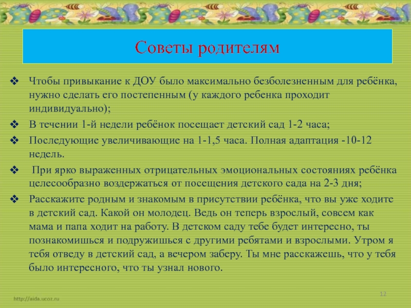 Слайд 12Советы родителям