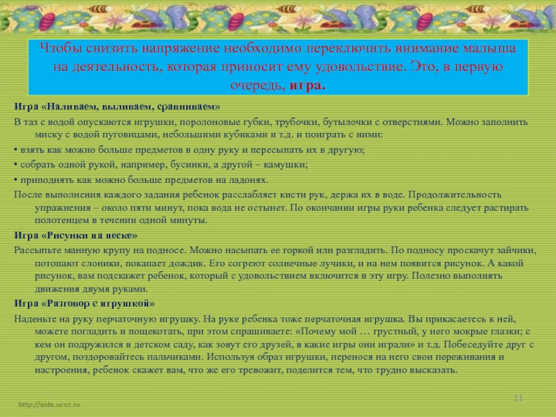 Чтобы снизить напряжение необходимо переключить внимание малыша на деятельность, которая
