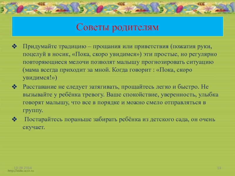 Слайд 13Советы родителям