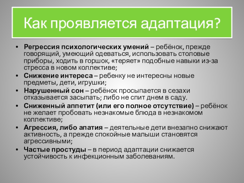 Частые простуды – в период адаптации снижается устойчивость к инфекционным заболеваниям.