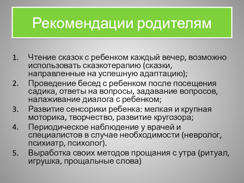 Выработка своих методов прощания с утра (ритуал, игрушка, прощальные слова)