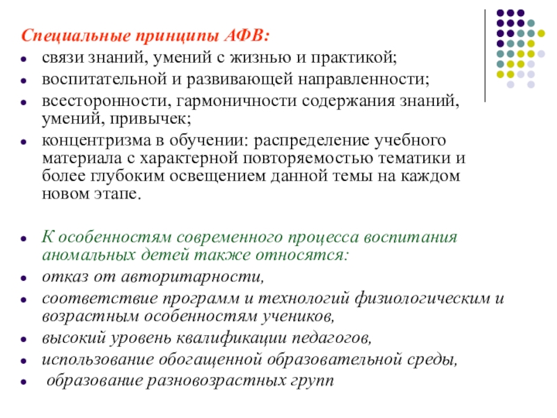 Слайд 13Специальные принципы АФВ: