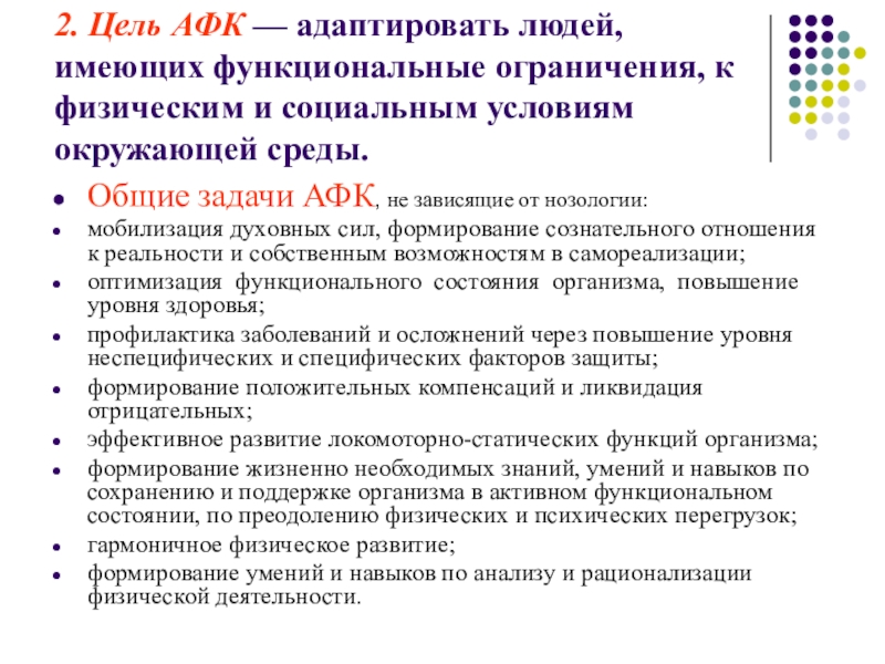 Слайд 32. Цель АФК — адаптировать людей, имеющих функциональные ограничения, к