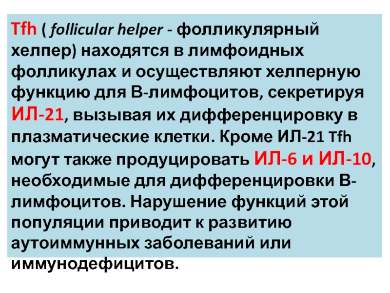 Слайд 26Tfh ( follicular helper - фолликулярный хелпер) находятся в лимфоидных фолликулах и