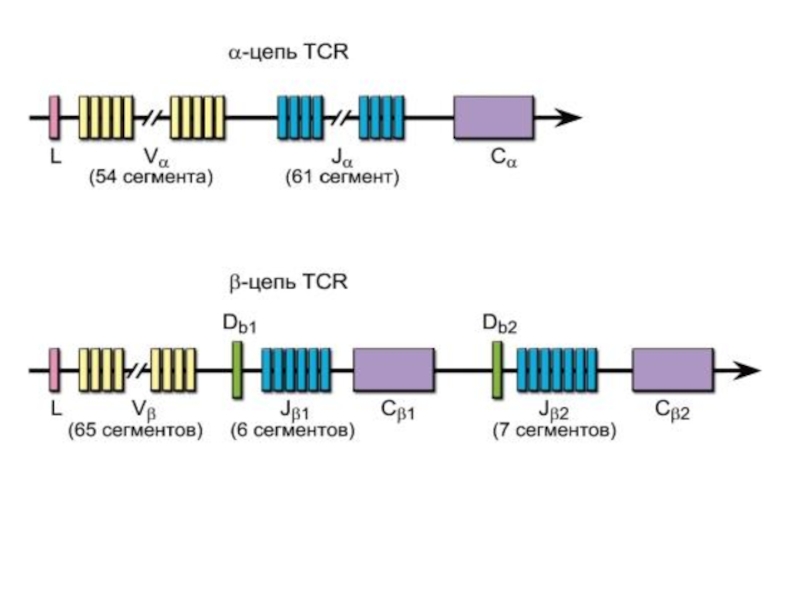 Слайд 13Гены T-клеточного рецептора