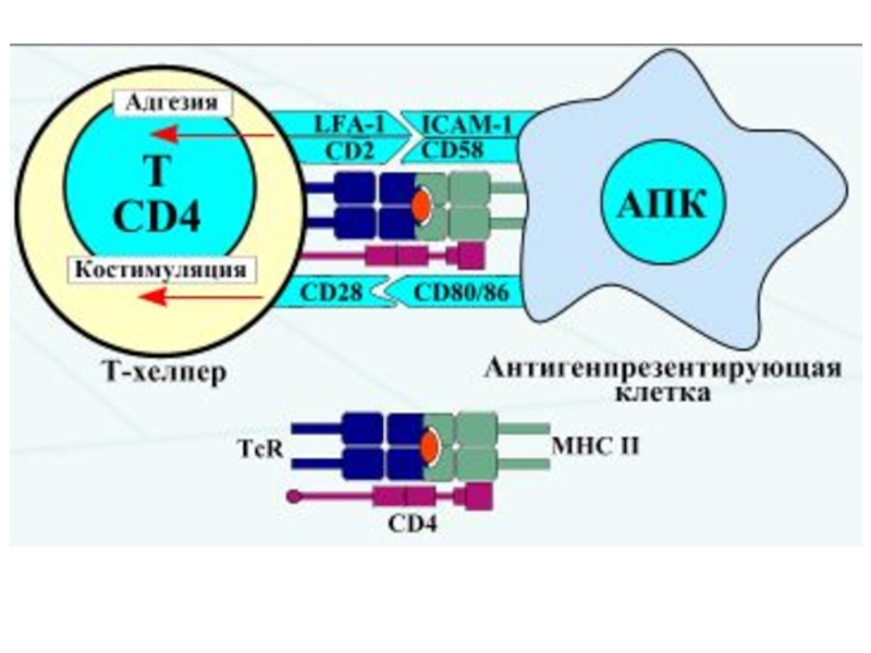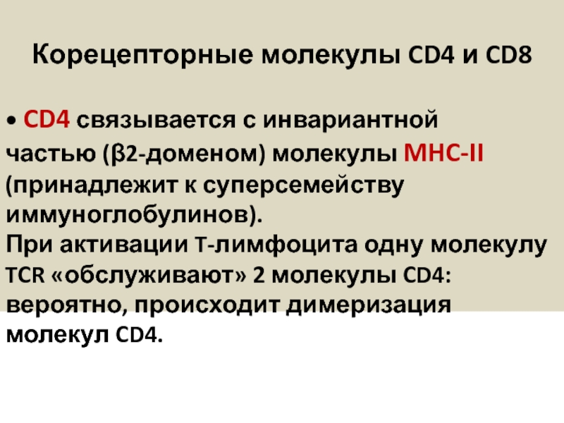 • CD4 связывается с инвариантной частью (β2-доменом) молекулы MHC-II