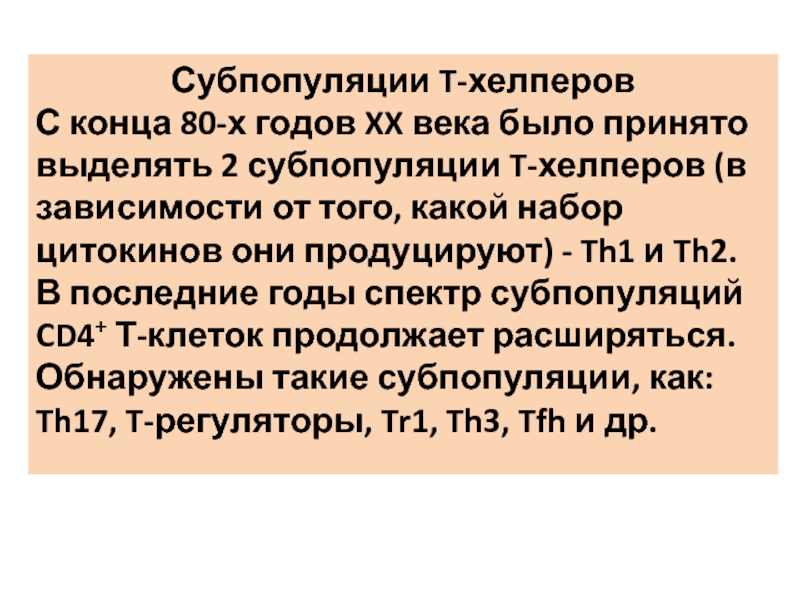 Слайд 21Субпопуляции T-хелперов