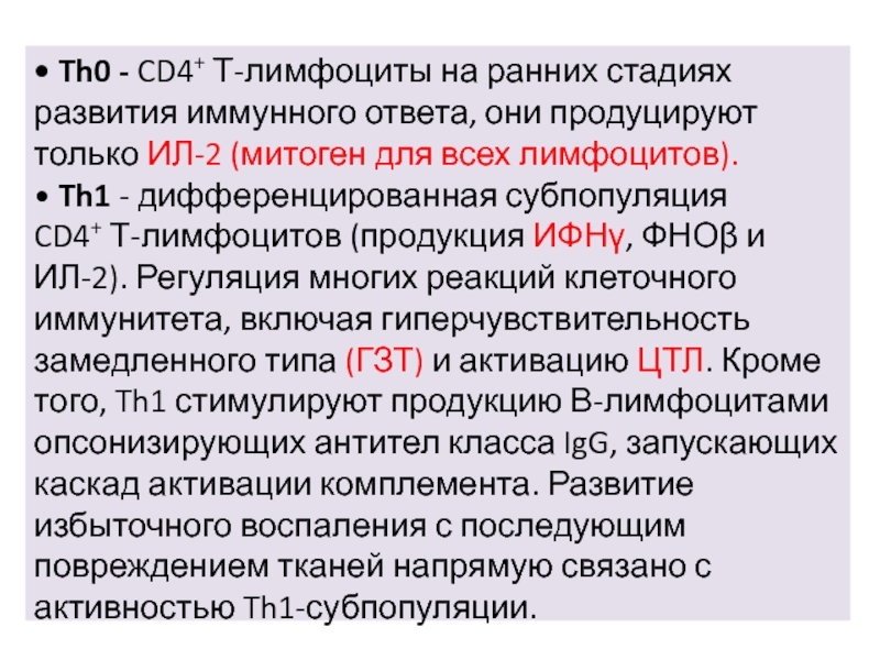 Слайд 22• Th0 - CD4+ Т-лимфоциты на ранних стадиях развития иммунного ответа, они