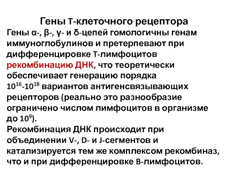 претерпевают при дифференцировке T-лимфоцитов рекомбинацию ДНК, что теоретически обеспечивает генерацию