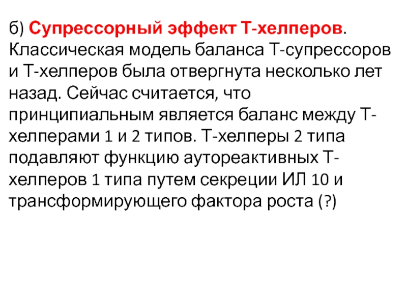 Слайд 33б) Супрессорный эффект Т-хелперов. Классическая модель баланса Т-супрессоров и Т-хелперов
